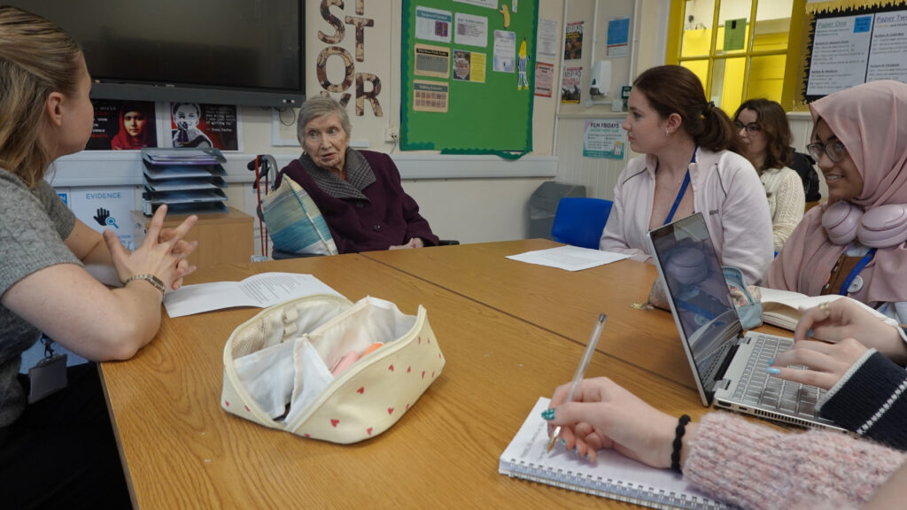 The centenarian shared her memories of school life and the war with Year 12 students and toured the site as it is now.