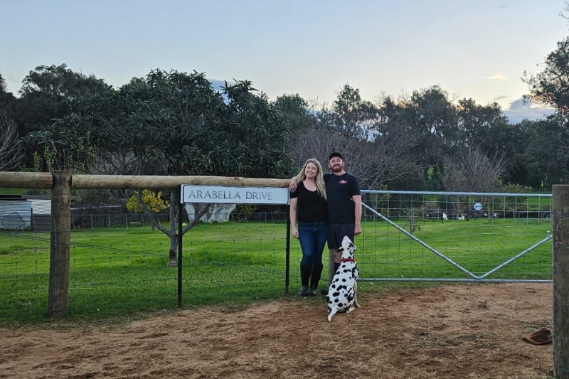 When Sheridan and Bruce met in a Wandsworth flat share, they couldn’t have predicted they would one day be hanging their street sign outside a farm in Australia.