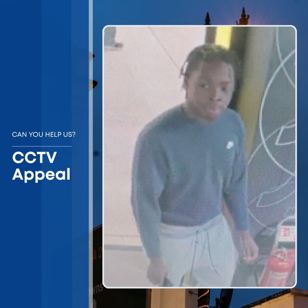 The suspect is described as a Black man of medium build, wearing a dark grey jumper and grey joggers.