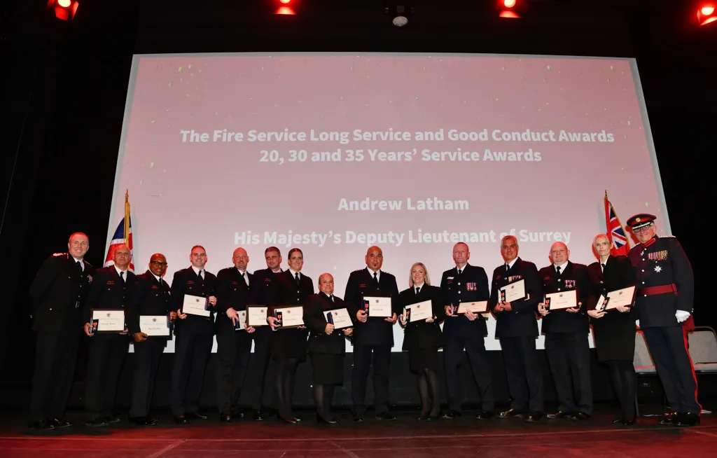The annual Awards and Commendations Ceremony at Dorking Halls on Monday recognised firefighters reaching career milestones.